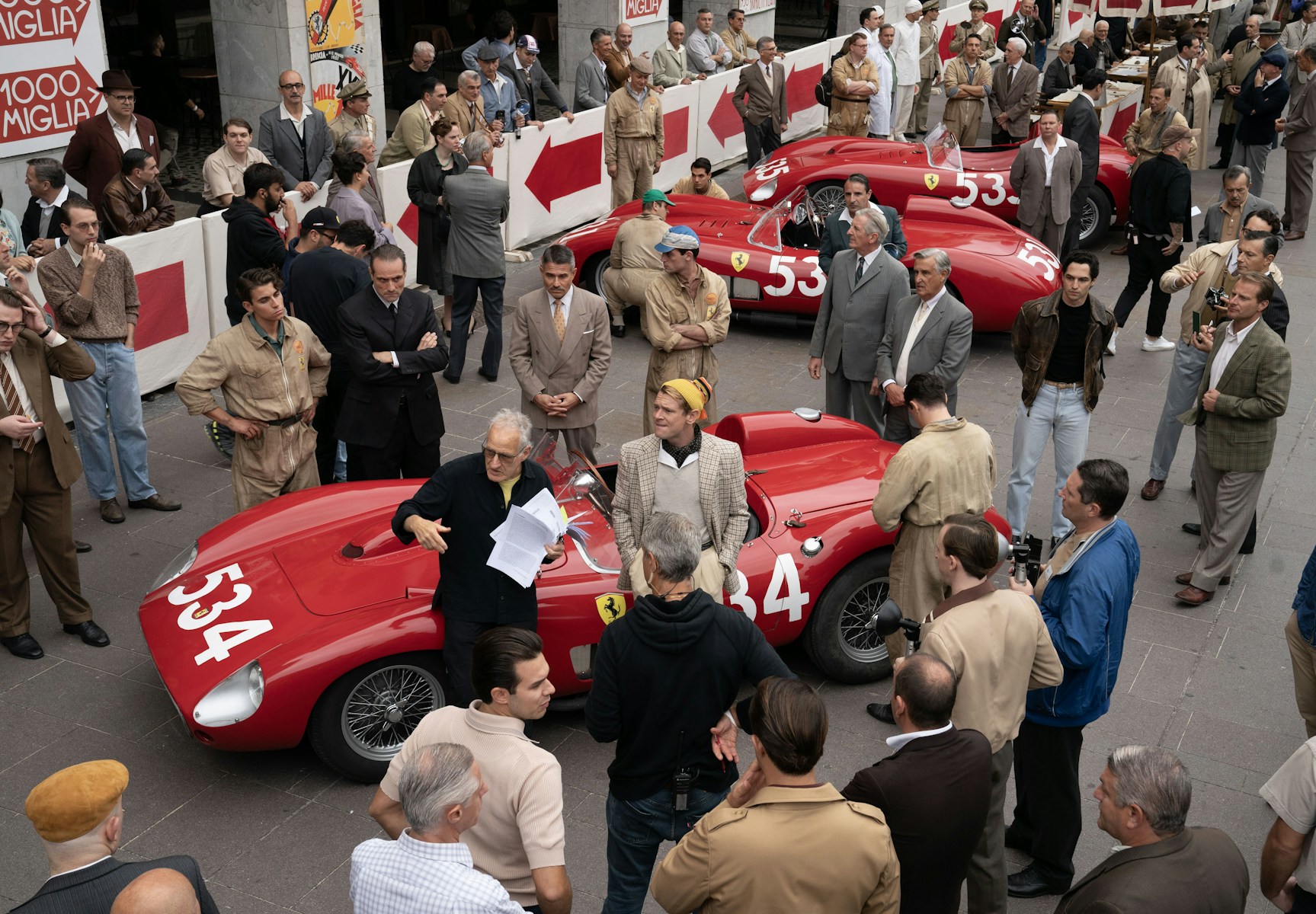 In life, when a thing works better, usually it is more beautiful to the eye. That's how Enzo Ferrari puts it to his son Piero in a scene from FERRARI. Director Michael Mann often calls Ferrari race cars moving sculpture, while noting the irony that they are not self-consciously designed as such. So, all the technological innovation and Italian intuition that goes into their design and manufacture became another area of exploration, as Mann tasked his team with creating a fleet of race cars from the ground up. Using specially designed chassis, 3D LiDAR scans of actual race cars — which of course couldn't be used in the film themselves, given their extraordinary value — and hand-crafted metal and fiberglass sculpts, the production succeeded in replicating the cars with a blend of old-world techniques and modern-day technology. Once they were painted and camera-ready, actors Patrick Dempsey (Piero Taruffi), Gabriel Leone (Alfonso De Portago) and Jack O'Connell (Peter Collins) could have their fun. Real-life racing drivers including actor Patrick Dempsey (Piero Taruffi), Derek Hill and Marino Franchitti also star as Jean Behra and Eugenio Castellotti, respectively, two celebrated drivers of the 1950s.
